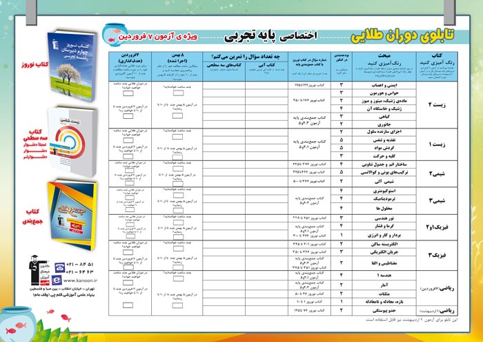هر دانش آموزی در کانون تابلو نوروز مخصوص به خودش را دارد. توصیه ما این است که دانش آموزان با والدین و پشتیبان ها روی تابلو نوروز تمرکز کنند. مبنای رنگ آمیزی آزمون های مشابه دوران طلایی نوروز است. معیار رنگ دهی مقایسه با همترازهاست. دلیل نامگذاری این تابلو نیز همین رنگ آمیزی است چراکه با رنگآمیزی این برگه به شکل یک تابلو میشود . برای گروه های پایه لازم است هدف گذاری با آزمون مشابه انجام شود.