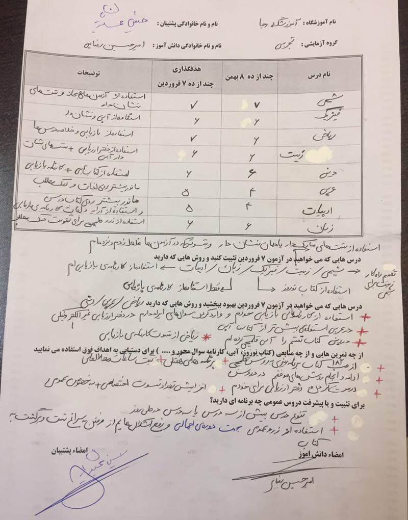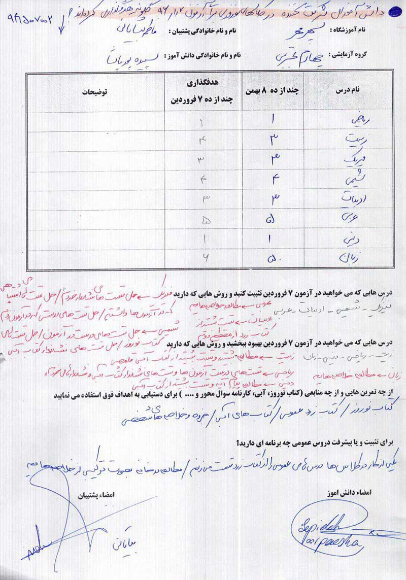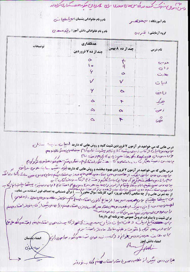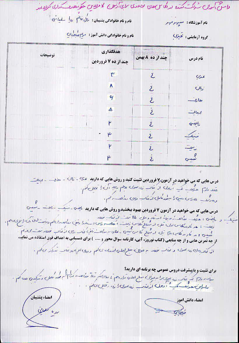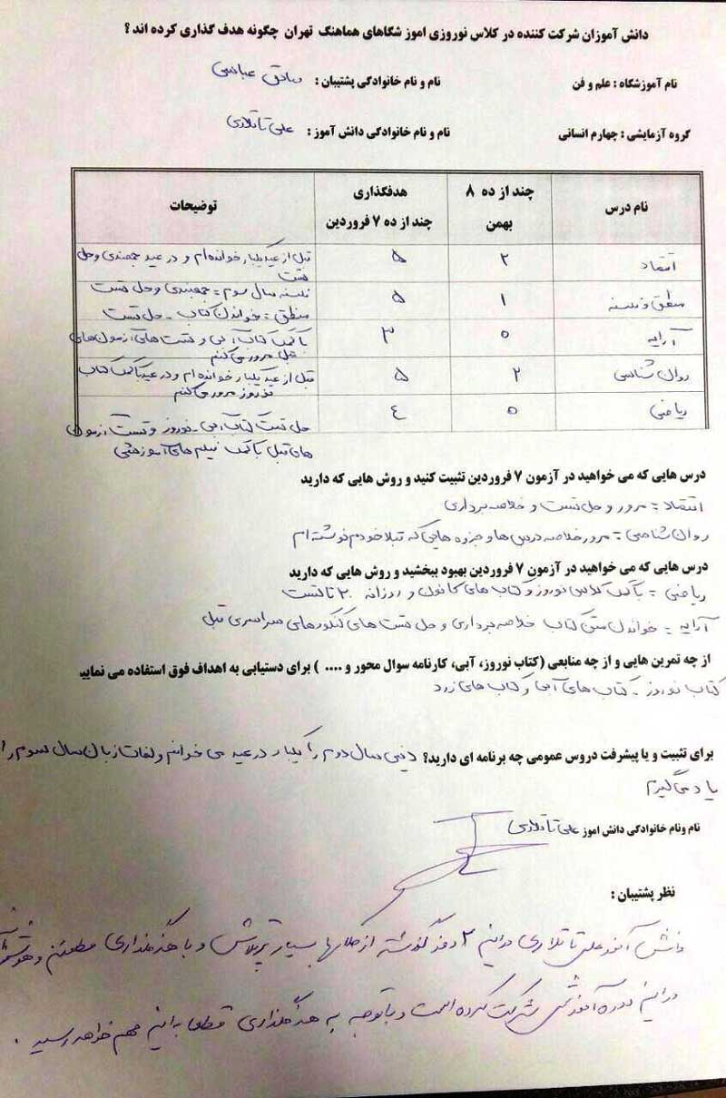 در برگه های هدف گذاری زیر مشاهده کنید دانش آموزان شرکت کننده در کلاس های نوروزی چگونه هدف گذاری کرده اند؟
