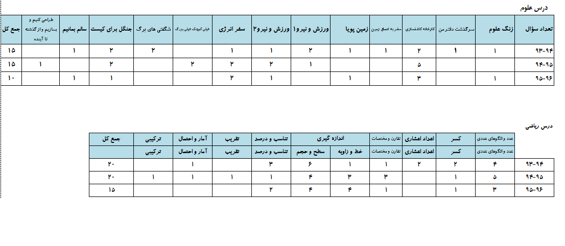 بودجه بندی مباحث تیزهوشان سه سال اخیر ششم دبستان