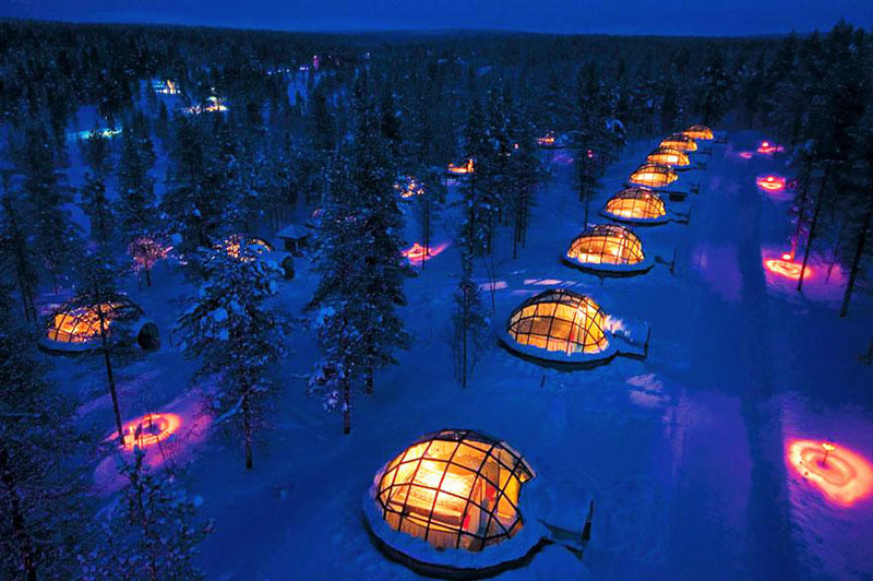 هتل کاکسلاوتانن (Kakslauttanen) که در شهر فینش لاپلند (Finnish Lapland) در حقیقت مجموعهای از ایگلوها (خانههای برفی) ست. این هتل در حقیقت یکی از گرانترین، مبتکرانهترین و بینظیرترین هتلها ست که مورد توجه و علاقهی زیاد دوستداران سفرهای ماجراجویانه قرار گرفتهاست. این هتل دارای ۲۰ خانه برفی ست در آنها پنجرههای سقفی برای تماشای شفق قطبی از توی تختواب ساخته شدهاست.