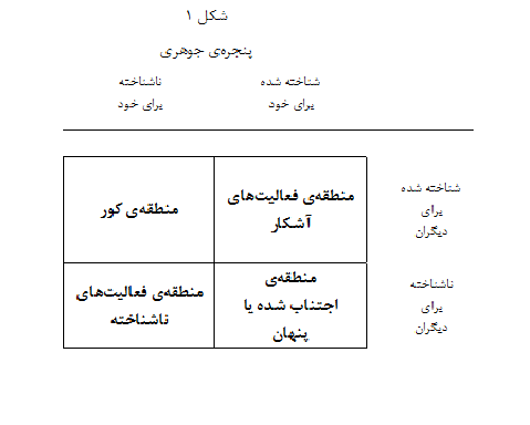 [پنجرهی جوهری از نام سازندگانش، جو لافت و هری اینگهام گرفته شده است.] رجوع کنید به کتاب آموزش روابط انسانی چاپ موسسة ان تی ال، 1982.