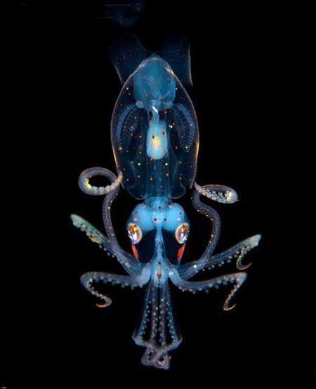 نوعی ماهی مرکب Sharpear Enope که در عمق 200 تا هزار متری اقیانوس های گرمسیری و نیمه گرمسیری دیده می شود.