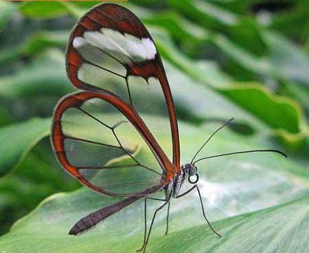 پروانه شیشه ای که شفاف بودن بالهایش زیبایی اش را چندبرابر کرده است.