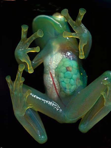 قورباغه شیشه ای که بین 2 تا 8 سانتی متر رشد می کند و معمولا در آمریکای جنوبی دیده می شوند.