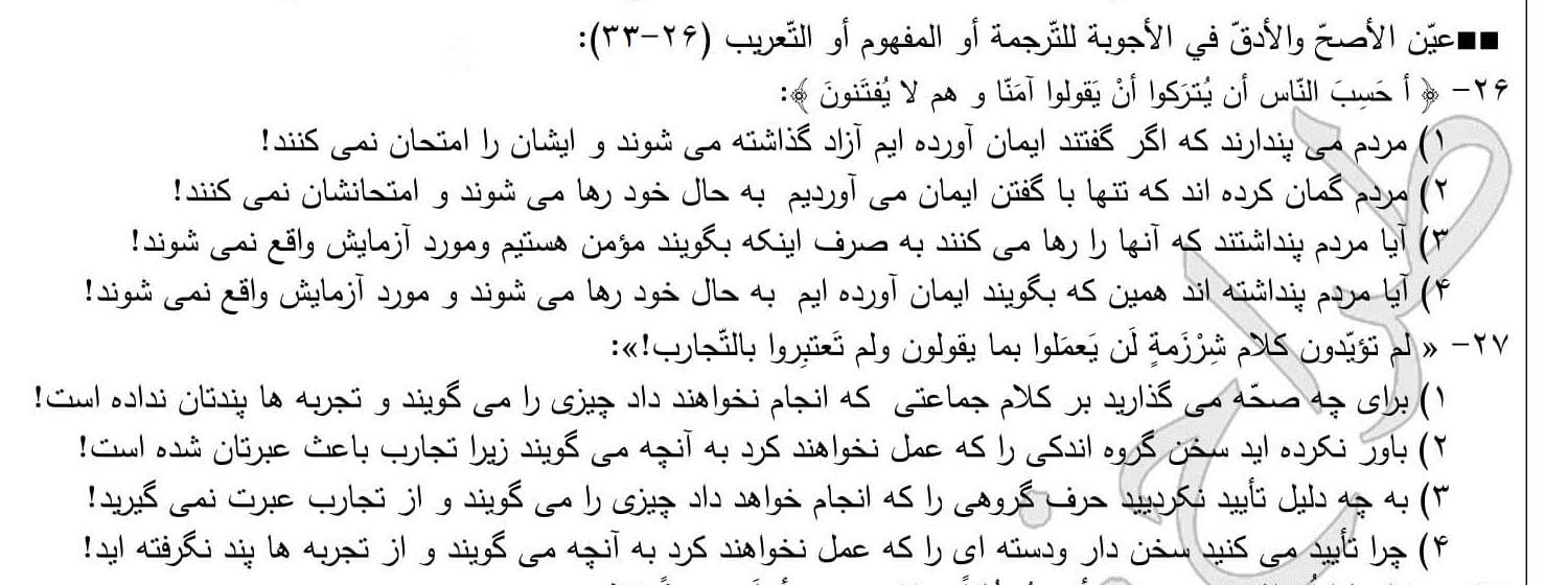 عیّن الأصحّ و الأدقّ فی الأجوبة للتّرجمة أو المفهوم أو التّعریب (26- 33):