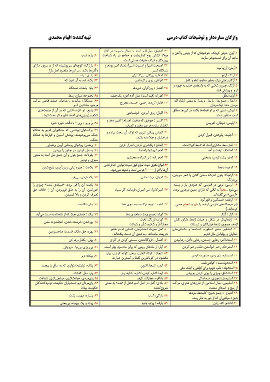 سه سؤال کنکور سراسری مربوط به واژه است. در این نامه واژگان انتهای کتاب درسی و واژگان توضیحات هر درس را آوردهام، امیدوارم که مفید باشد.