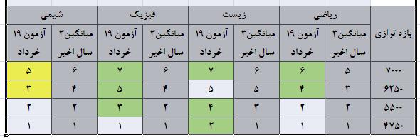 مقایسه سطح دشواری آزمون با کنکور بدین شرح است: