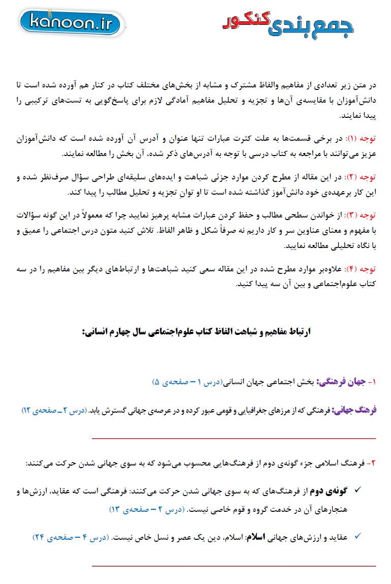 ارتباط مفاهيم و شباهت الفاظ كتاب علوماجتماعي سال چهارم انساني