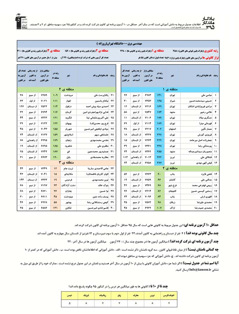 نمره و رتبه لازم برای قبولی در رشته برق دانشگاه تهران ، براساس قبولیهای کانون در کنکور 95 را اینجا مشاهده کنید...نمره و رتبه لازم برای قبولی در رشته برق دانشگاه تهران ، براساس قبولی های کانون در کنکور 95 را اینجا مشاهده کنید...