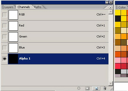 ۹- خوب اين روش select گرفتن شايد يه کم عجيب و غريب به نظر مياد ولي فتوشاپ اين امکان رو ميده که بتونيم از خود لايه هاي channel يه select تهيه کنيم. حالا همون channelي رو که با هم ساختيم که اينجا اسمش رو تغيير نداديم و alpha1 هست رو انتخاب کنيد.