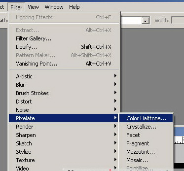 ۴- خوب حالا مطمئن شيد که channel رو انتخاب کرديد. به منوي filter بريد و داخل pixelate گزينه ي halftone رو انتخاب کنيد.