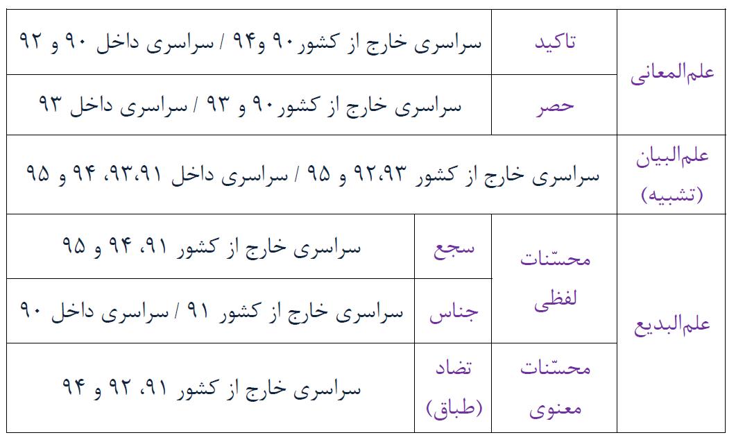 تحلیل آماری مبحث بلاغت در کنکور سراسری