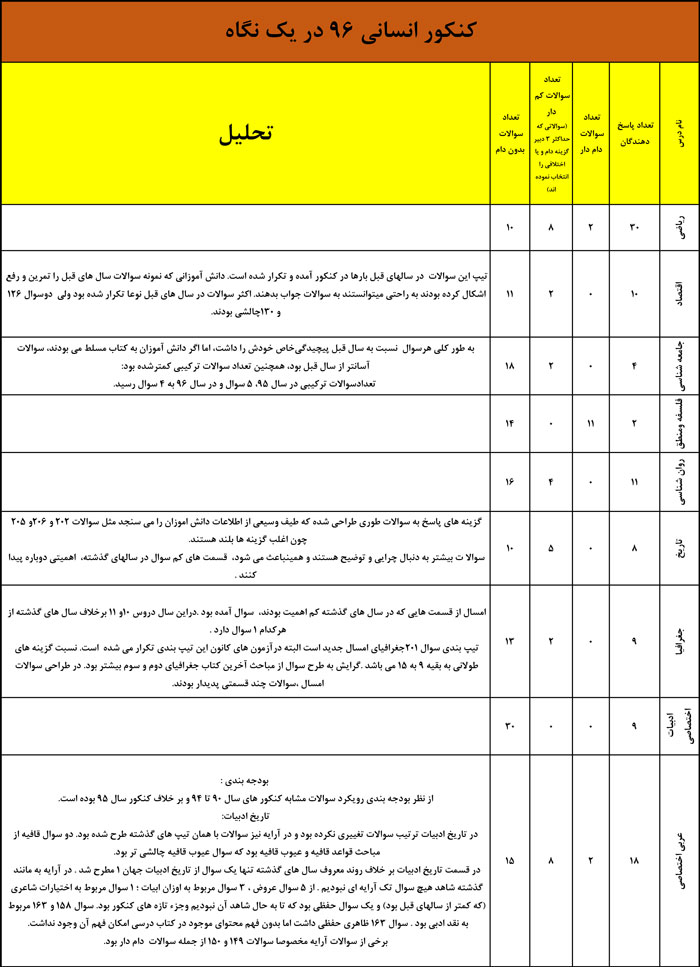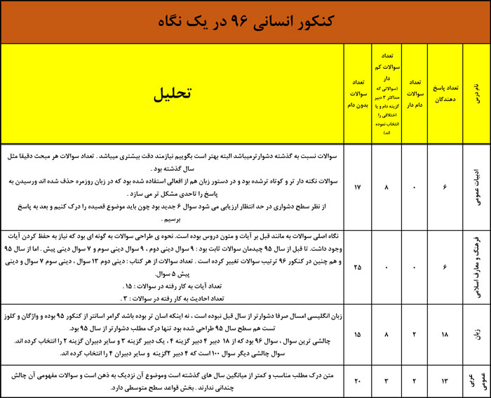 کنکور انسانی در یک نگاه به همراه آمار سوالات دام دار و چالشی و تحلیل دروس