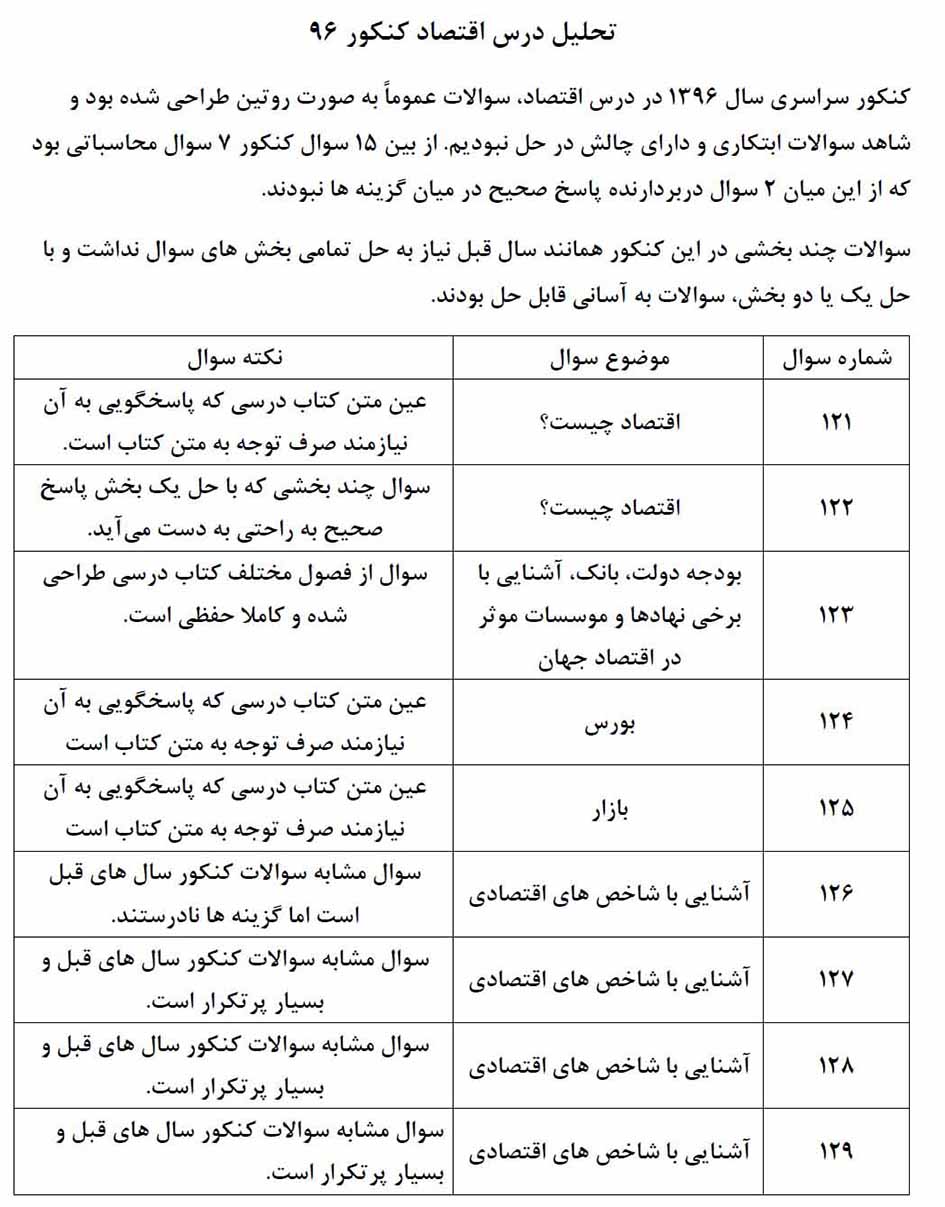 تحلیل کنکور 96