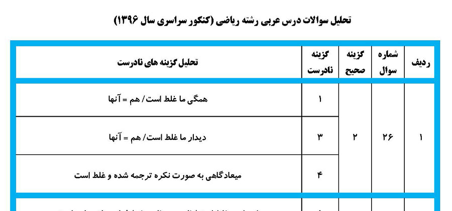 وحید دهقانپور: پاسخ تشریحی درس عربی در کنکور ریاضی 96