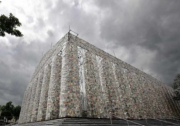 اما این بار از این بنای یونانی در نمایشگاهی در آلمان رونمایی شده است که به جای داشتن ستون های مرمری ، در ساخت آن از 100000 کتاب ممنوعه استفاده شده است.نام آن را " پارتنون کتاب ها " گذاشته اند که شاید بتوان آن را معبدی از کتاب ها دانست. این بنا در نمایشگاه داکیومنتا 14 که در شهر کاسل آلمان برگزار می شود رونمایی شده است. هدف سازنده این طرح بحث درباره سانسور بوده است. این بنا همچنین در جایی که نازی ها در سال 1933 کتاب های نوشته شده توسط نویسندگان یهودی و مارکسیست را آتش زدند نصب شده است.