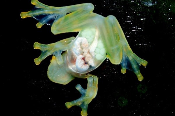 قورباغه شیشهای با پوست شفاف در میان درختان جنگلهای کوهستانی مرطوب در مرکز و جنوب آمریکا زندگی میکند. قورباغه شیشهای اغلب در هنگام شب ظاهر میشود و رنگهای پسزمینهای برگها از طریق پوست شفاف این دوزیست قابل مشاهده است و همین امر باعث پنهان ماندن از چشم شکارچیان میشود. قورباغه ماده به صورت مستمر توده تخمهای شفاف را که روی برگها قرار دارند، با کمک زبان خود مرطوب نگه میدارد. از درون بدن شفاف قورباغه شیشهای، میتوان اندام داخلی بدن از جمله قلب، روده و عروق خونی و حتی رگههای برگ گیاهان را مشاهده کرد.