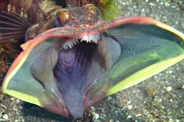 این ماهی 30 سانتیمتر طول دارد و شکارچی بسیار قهاری است. این ماهی خود را زیر شنهای ته دریا پنهان میکند، فقط دهان بزرگش بیرون باقی میماند و به محض برخورد با ماهی بلافاصله آن را با دندانهای تیزش گرفته و میبلعد.