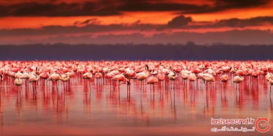 دریاچه ناکورو در مرکز کنیا واقع شده است ، این دریاچه به دلیل وجود هزاران فلامینگویی که در فصل گرم به سوی آن هجوم می آورند از شهرت بالایی برخوردار است. بسیاری از گردشگران برای دیدن این فلامینگوها به دریاچه ناکورو می روند.
