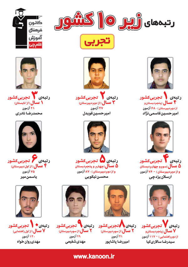10 – هر 10 نفر اول کشور در رشتهی تجربی در آزمونهای برنامهای کانون شرکت کردند.