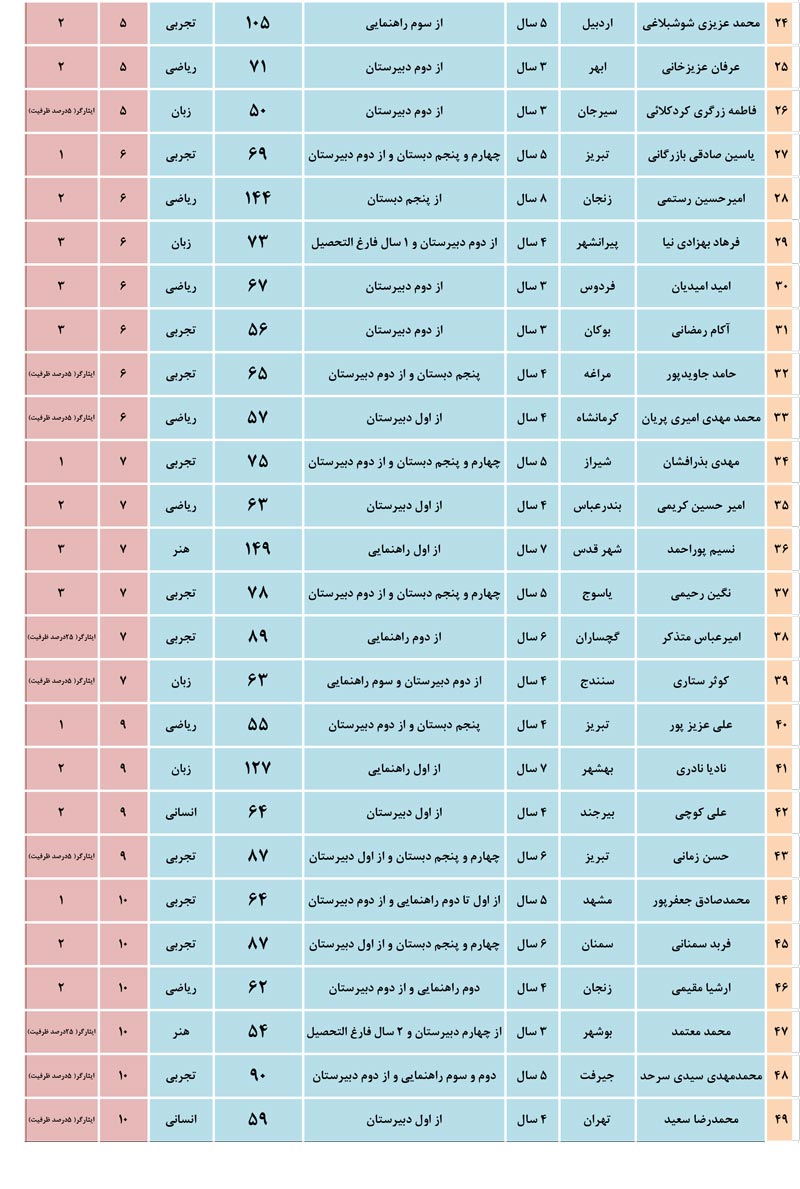 اسامی قبولی های تیزهوشان و نمونه دولتی نهم