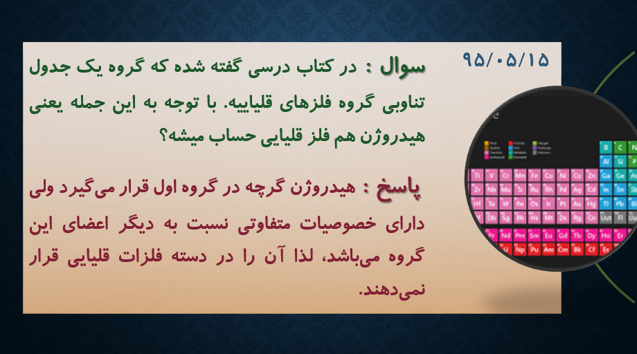 از میان کامنتهای ارسالی دانش آموزان ، تعدادی از کامنتهای منتخب درس شیمی ، همراه با پاسخ و تاریخ درج کامنت در سایت، در اختیارتان قرار میگیرد.