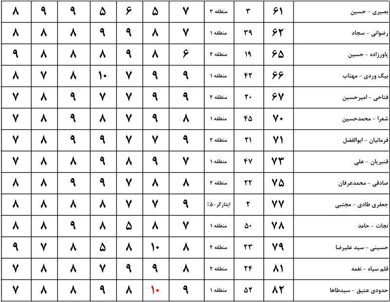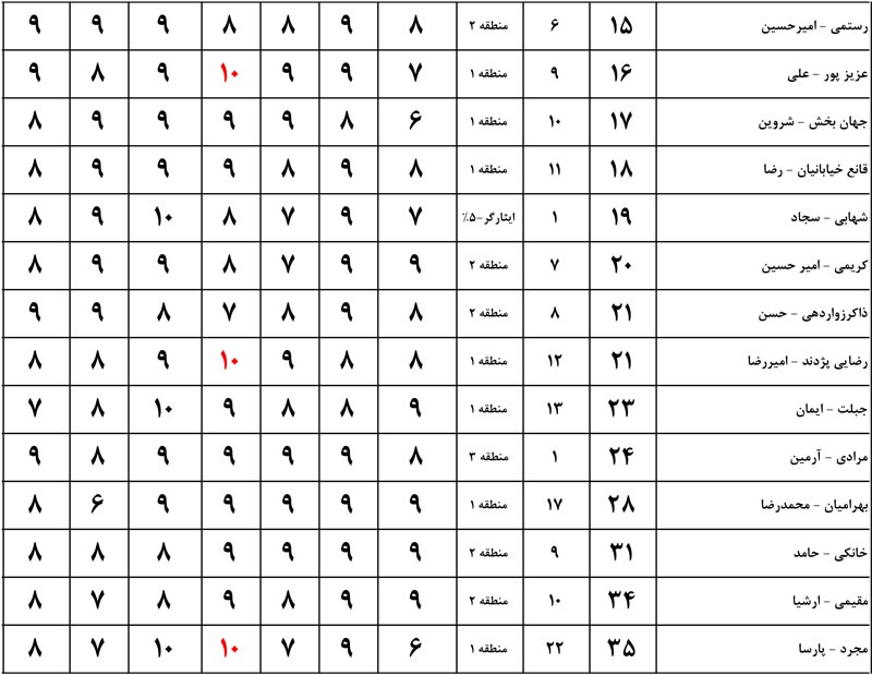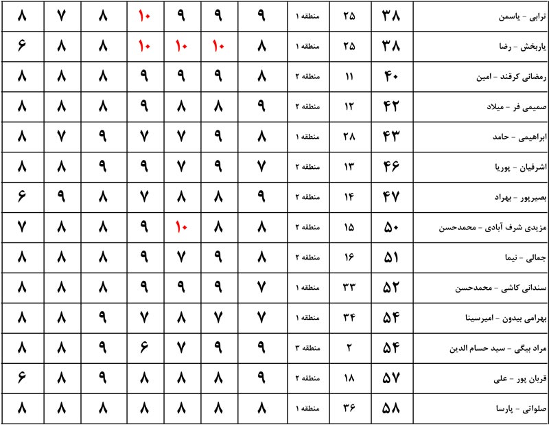 عدد های 10 که با رنگ قرمز مشخص شده اند نشان دهنده پاسخگویی 100 درصد کامل دانش آموز در کنکور است.