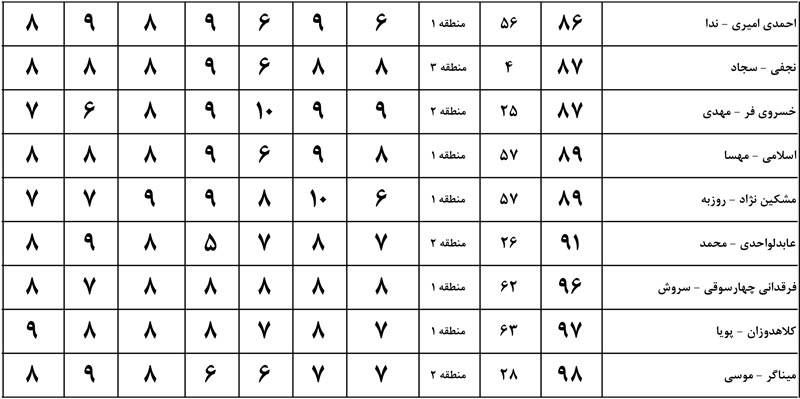 توجه داشته باشید درصدهای کارنامه در هر درس به چند تا از 10 تا تبدیل شده اند و اعداد گرد شده اند.