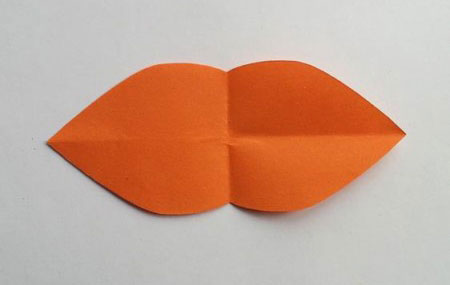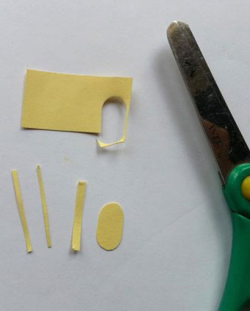 4. ۴ تکه کاغذ به صورتی که در تصویر می بینید، دربیاورید. دو تا برای شاخک ها استفاده می شود، یکی برای بدن پروانه است و دیگری هم برای اینکه دو تا بال رو نزدیک هم نگه دارد.