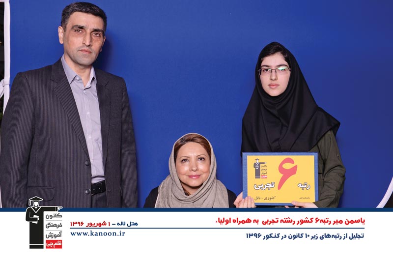 یاسمن میر هستم، رتبهی 6 کشور، 4 منطقهی 2 کنکور سراسری 96 گروه آزمایشی علوم تجربی از بابل استان مازندران.