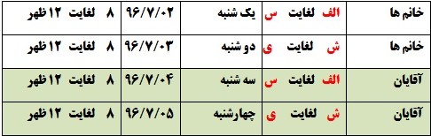 رشته های: پزشکی (نیمسال اول و دوم)- دندانپزشکی –علوم آزمایشگاهی روز دوشنبه مورخ 96/6/27