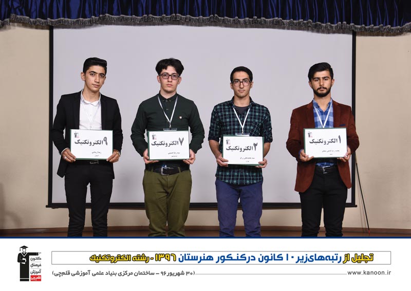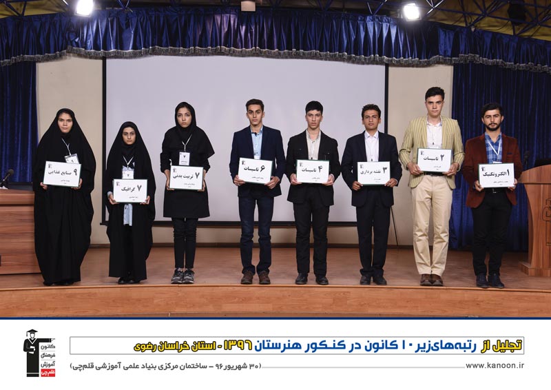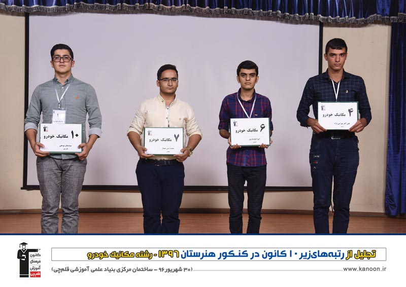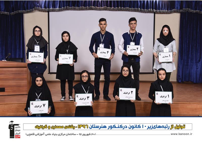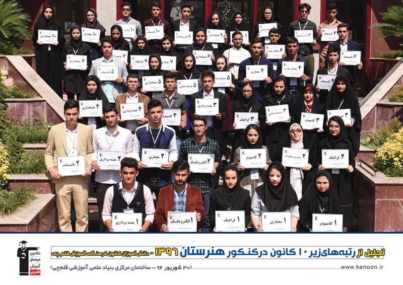 مراسم تجلیل از رتبه های زیر 10 کنکور هنرستان 96 روز پنج شنبه 30 شهریور 96 در ساخنمان مرکزی بنیاد علمی آموزشی قلم چی برگزار شد .
