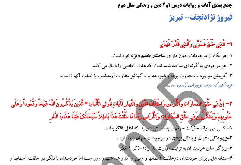 فیروز نژادنجف: جمع بندی آیات و روایات درس 1و2 دین و زندگی 2