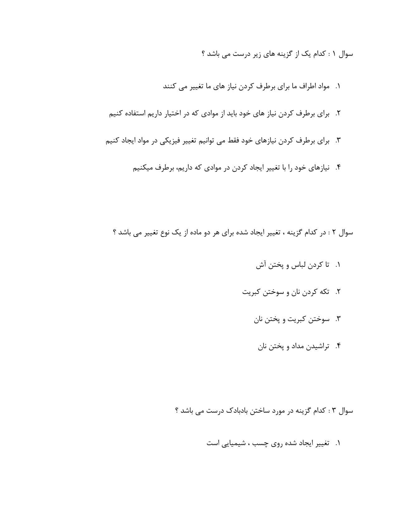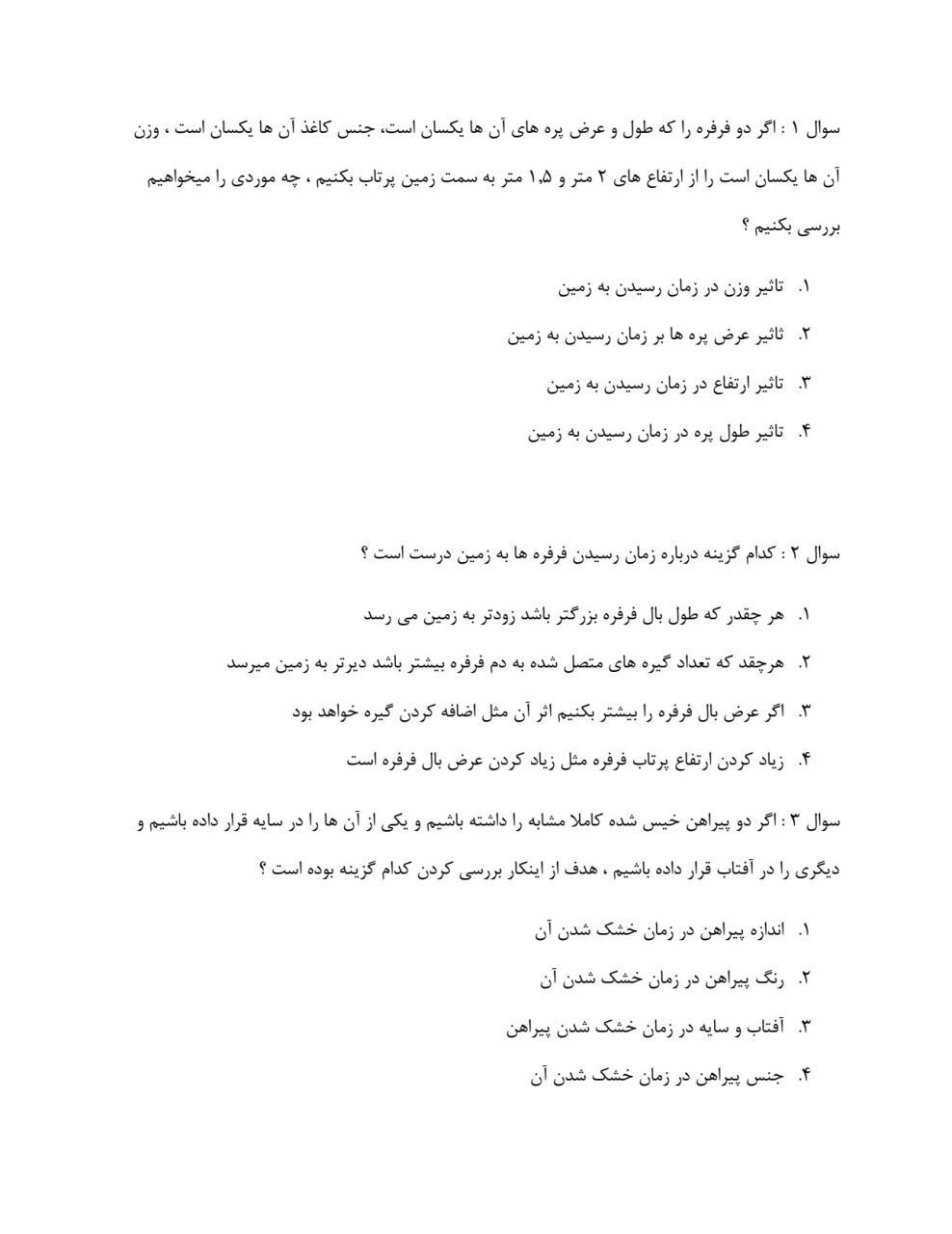 نمونه سوال امتحانی