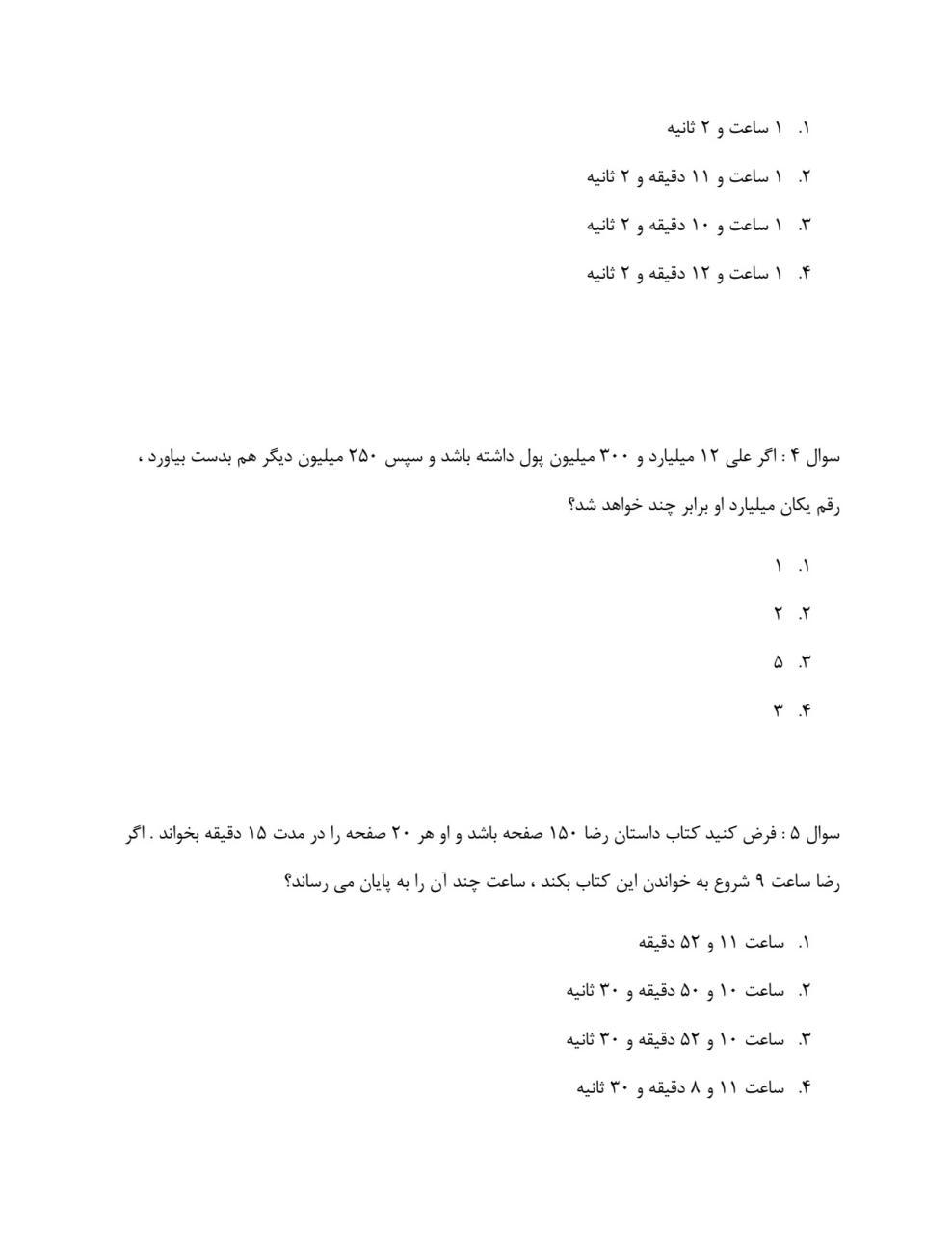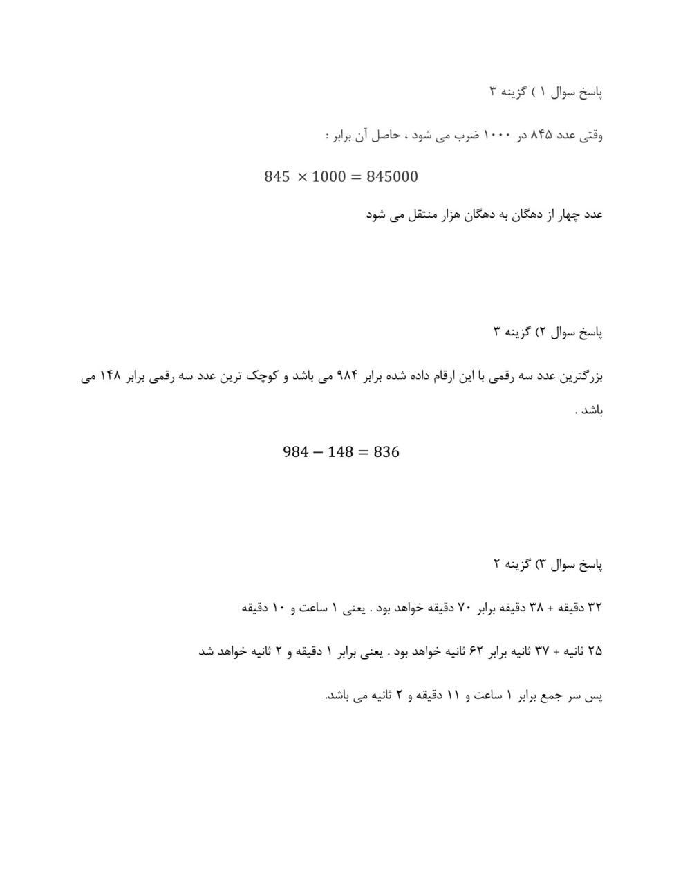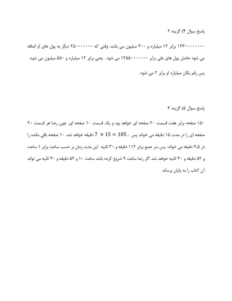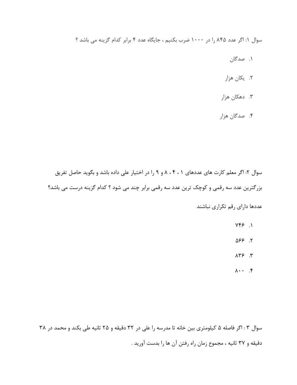 نمونه سوالات تستی با حل تشریحی برای درس ریاضی جهت آماده سازی دانش آموزان برای آزمون 21 مهر