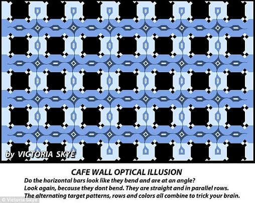 این تصویر که یکی از برترین تصاویر انتخاب شده در سال ۲۰۱۷ بوده است. در این تصویر که توسط شعبدهبازی به نام ویکتوریا اسکای طراحی شده به نظر میرسد خطهای آبیتیره در حال قطع کردن هم هستند. در حالی که این خطوط کاملا موازی به حساب میآیند. ویکتوریا اسکای علت این مسئله و راز طراحی خود را شکلهای الماس شکل سفید و سیاه در محل تقاطع خطها میداند. البته رنگها و تضاد آنها برای فریب دادن چشم این طور در نظر گرفته شدهاند.