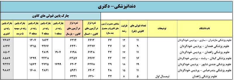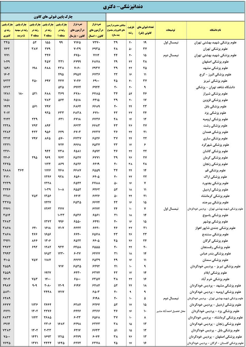 رتبه و اطلاعات قبولی رشته دندان پزشکی در دانشگاه های مختلف که براساس نتایج دانش آموزان کانونی در کنکور 96 استخراج شده است را در ادامه مشاهده کنید.