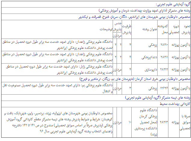 | با آزمون | ظرفيت مازاد | 11864 | پزشكي | 10 | زن | مرد |