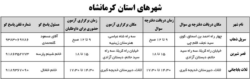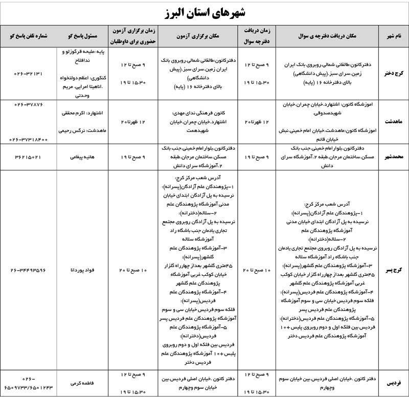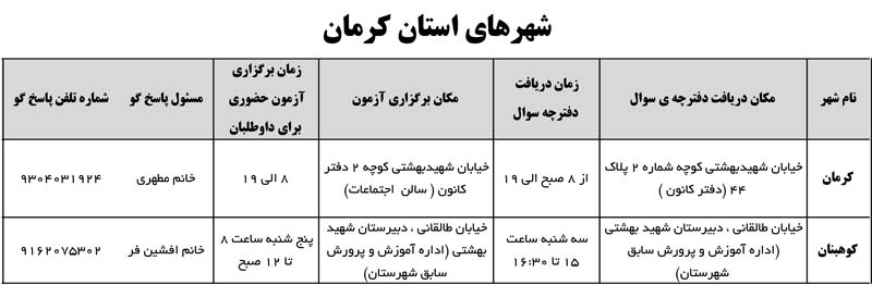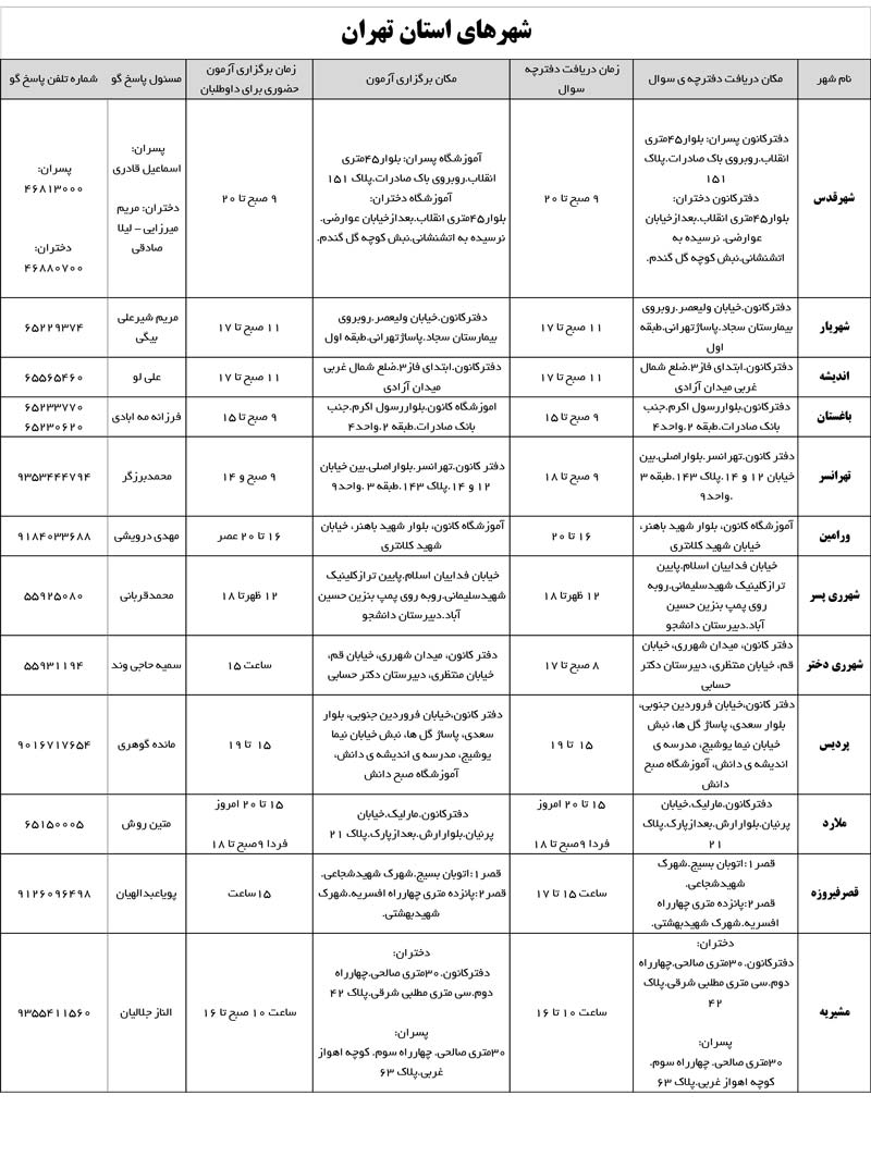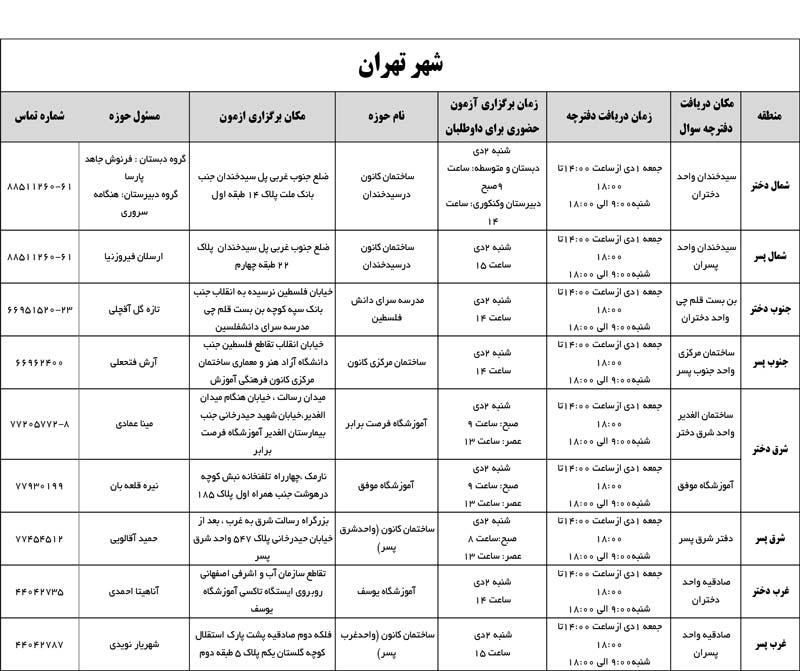 ساعت های برگزاری آزمون در روز شنبه 2 دی و مراکز دریافت دفترچه سوال را در فایل ضمیمه دانلود کنید