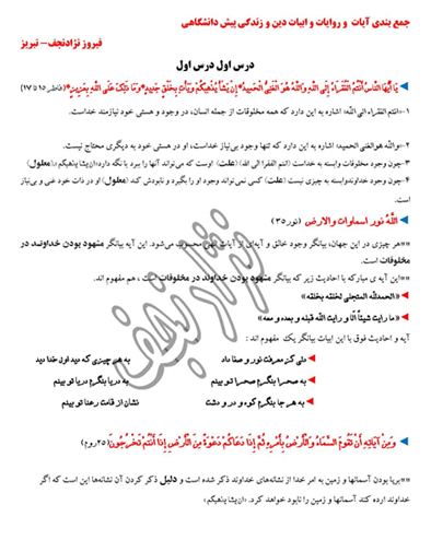 فیروز نژادنجف:جمعبندی آیات دین و زندگی پیشدانشگاهی