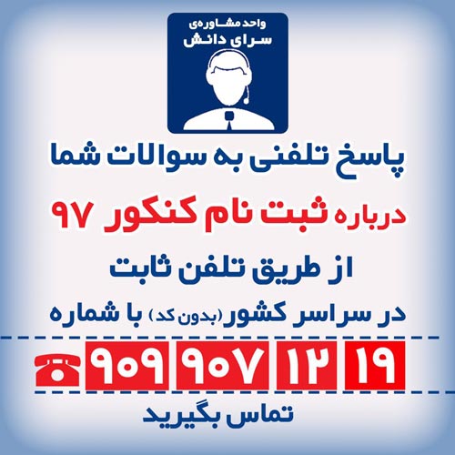 وی افزود: کارت شرکت درآزمون سراسری سال ۹۷ به تمام داوطلبان گروه های آزمایشی پنج گانه، از روز دوشنبه ۴ تیر ۹۷ برروی سایت سازمان سنجش آموزش کشور قرار خواهد گرفت و لذا داوطلبان باید از روز دوشنبه ۴ تیرماه ۹۷ لغایت روز چهارشنبه ۶ تیرماه ۹۷ به سایت سازمان سنجش آموزش کشور مراجعه کرده و نسبت به دریافت پرینت کارت شرکت در آزمون سراسری سال ۹۷ و برگ راهنمای مذکور اقدام کنند.
