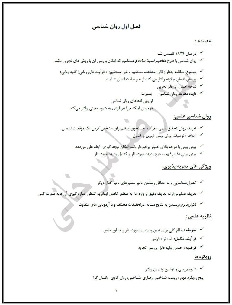 خلاصه فصل اول تا چهارم روان شناسی (مناسب برای مقاطع پیشدانشگاهی و آمادگی برای کنکور سراسری)