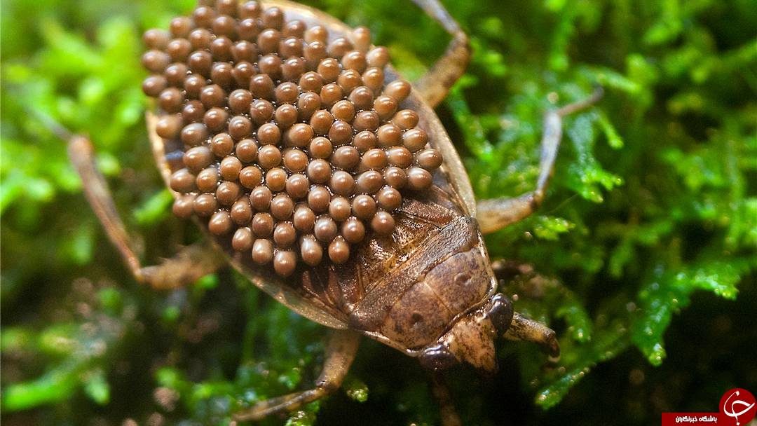 حشرات آبی نر با حمل فرزانشان بر پشت خود، امنیت آنها را تضمین میکنند. حشرات ماده بعد از جفت گیری، پشت حشرات نر تخم میگذارند که تعداد آنها به ۱۵۰ عدد هم میرسد. تخمها محکم به حشره نر میچسبند تا زمانی که آماده شکستن شوند. حتی بعد از اینکه بچهها از تخم درآمدند، پدر به مدت دو سال به مراقبت از آنها ادامه میدهد.