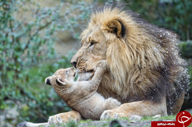 شیرهای نر به شدت از گروهشان در مقابل خطرات محافظت میکنند. با این حال آنها در بزرگ کردن تولههای خود مشارکت چندانی ندارند. شیرهای نر بیشتر عمر خود را صرف خوابیدن میکنند در حالی که شیرهای ماده شکار میکنند و به فرزندان خود مهارتهای مورد نیاز برای بقا را میآموزند. شیرهای نر معمولا غذا را به زور میگیرند و شیرهای ماده و تولهها گرسنه میمانند. هرچند شیرهای نر معمولا تولههای خودشان را نمیکشند، اما تولههای شیرهای نر دیگر را میکشند.