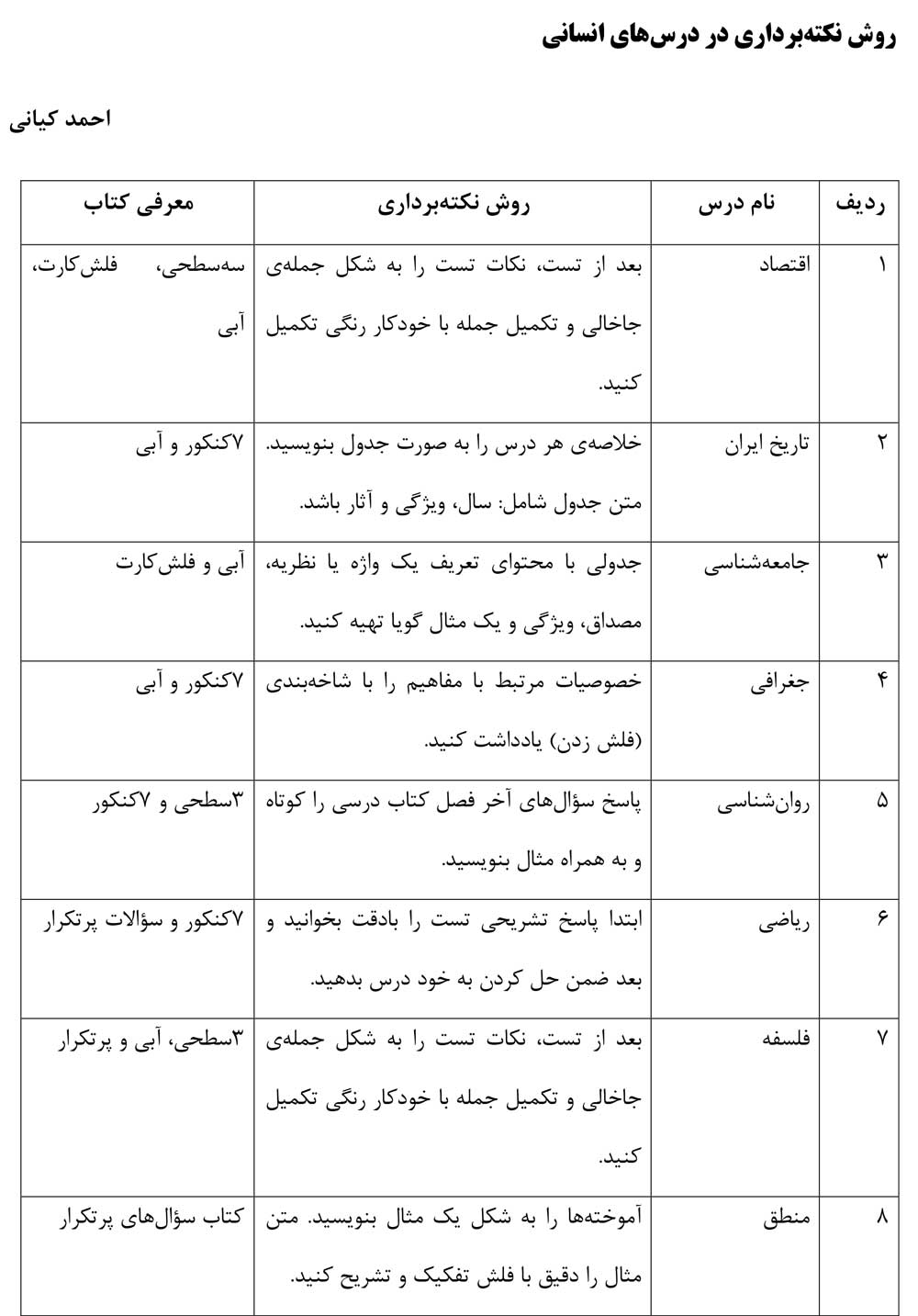 معرفی کتاب | روش نکتهبرداری | نام درس | ردیف |