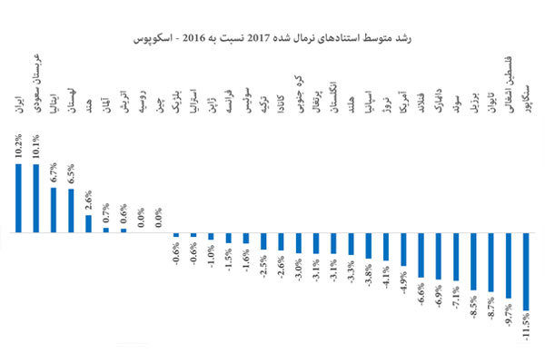 دکتر علی گزنی به عنوان یکی از بنیانگذاران پایگاه استنادی علوم جهان اسلام در گفتگو با خبرنگار مهر در این باره گفت: براساس شاخص متوسط استناد نرمال شده مستخرج از پایگاه استنادی اسکوپوس، اثرگذاری/کیفیت علم کشور در سال ۲۰۱۷ نسبت به ۲۰۱۶ از ۱۰.۲ درصد رشد حکایت می کند که بالاترین میزان رشد در بین ۳۰ کشور برتر دنیا از لحاظ اثرگذاری علمی است.
