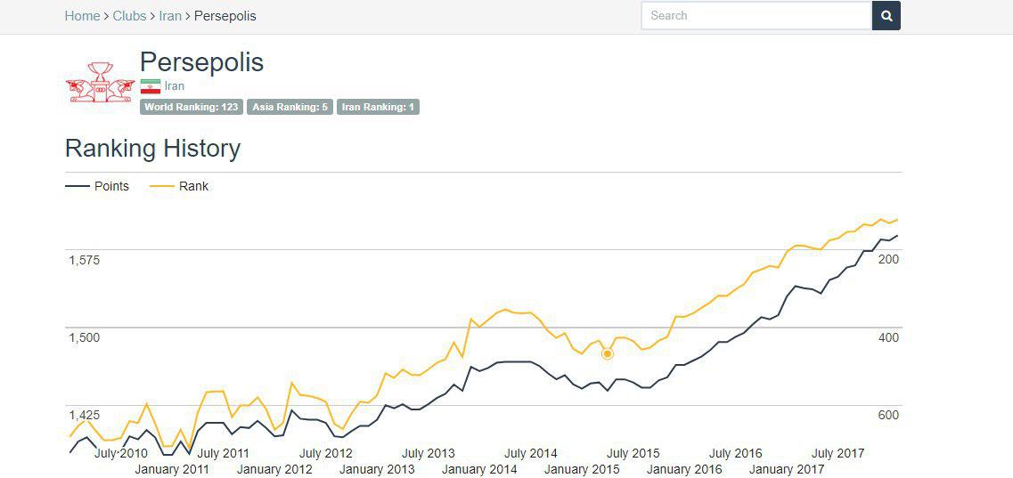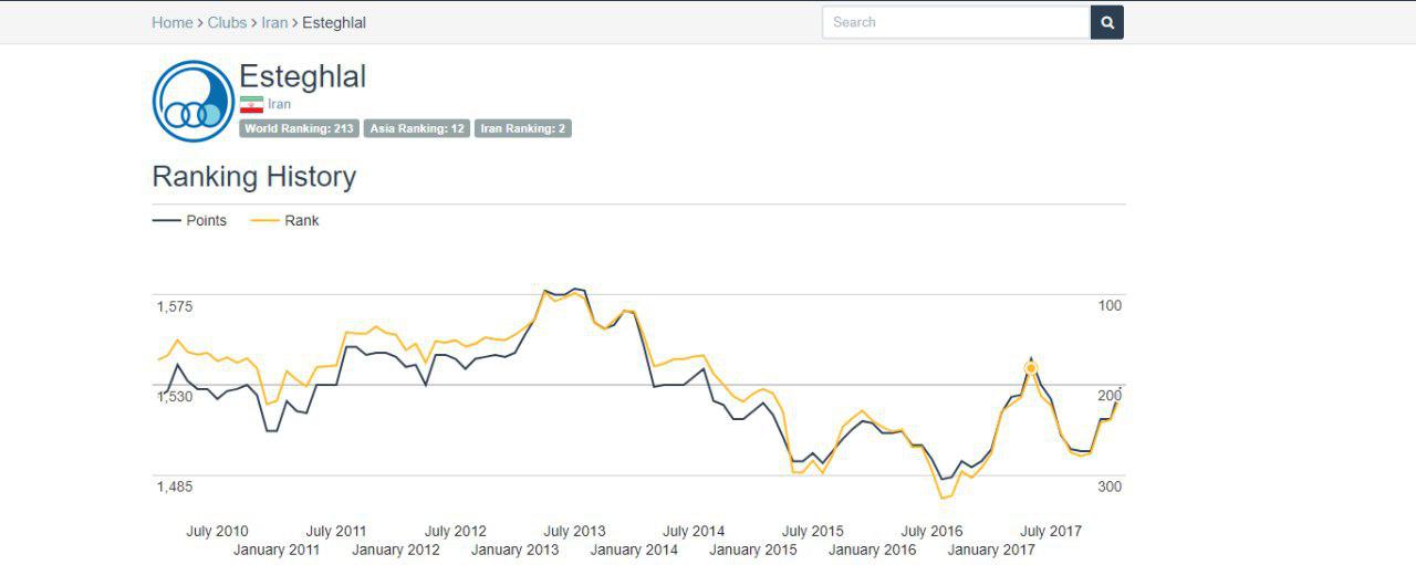 استقلال در آخرین رنکینگی که پیش از این در ژانویه 2018 اعلام شده بود در رتبه 239 رنکینگ قرار داشت و بعد از کسب نتایج خوب در هفته ها و ماه های بعدی توانست به رتبه 213 برسد. پرسپولیس اما در آخرین رنکینگ که در دسامبر 2017 اعلام شد در رتبه 122 بهترین ها قرار داشت اما چند نتیجه اخیر این تیم باعث شد تا پرسپولیس با یک پله سقوط به رتبه 123 بهترین های باشگاهی جهان برسد.