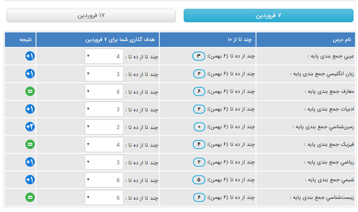 هدف گذاری برای آزمون 7 فروردین 97 نسبت به آزمون 6 بهمن 96 - جمع بندی دروس پایه برای کنکوری ها و جمع بندی نیم سال اول برای یازدهمی ها