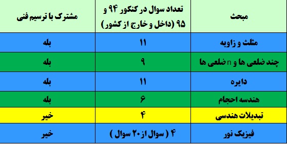 ترسیم فنی آزمون 7 فروردین مباحث هندسه مسطحه ،هندسه احجام و ترسیمات هندسی می باشد . ترسیمات هندسی هر ساله حدود 2الی4 سوال را در کنکور به خود اختصاص میدهد . این مبحث با مباحث رسم سه نما ، مجهول یابی و خط و صفحه نکات مشترک زیادی دارند و نکات همدیگر را تکمیل می کنند . برای اینکه این مطالب را بهتر یاد بگیرید پیش نهاد میشود مباحث مرتبط را با هم بررسی کنید .