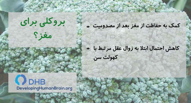 بروکلی غذای مغز نیست اما بهترین غذا برای بهبود صدمات و ضربات به مغز است. چندین مطالعه از سال 2007 نشان می دهد بروکلی در ترمیم رابط های عصبی و سرعت بخشیدن به فرایند بهبود مغز موثر است.